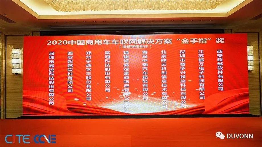 获奖喜报|都万荣获”2020中国商用车车联网解决方案金手指奖”